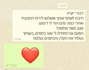 לאחר תקופה ארוכה וקשה של כתמים ודימומים בין וויסתיחם שגרמו לקיצור ימי טהרה אני מצליחה להשאר בלי הכתמים. עי הקלין. תודה גדולה לדבורי, תמשיכי להיות שליחה לדברים טובים ולהרבות אור בבתי ישראל.
